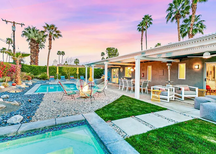 In der Villa Sunrise Paradise - Sparkling Pool And Spa findet man eine voll ausgestattete Küchenzeile mit einer Kaffee-/Teemaschine, einem Kühlschrank und einem Herd. Lediglich 1 Kilometer von hier entfernt finden Sie das Restaurant Jack in the Box, das leckere Gerichte serviert. Dank der Bushaltestelle Tahquitz Canyon & Farrell, die in rund 5 Gehminuten Entfernung von dieser Unterkunft ist, können die Gäste Palm Springs leicht erkunden.